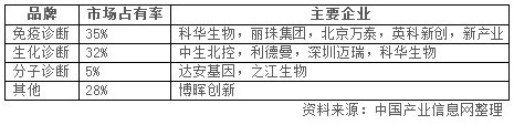 國內(nèi)IVD細(xì)分市場(chǎng)份額和主要龍頭企業(yè)